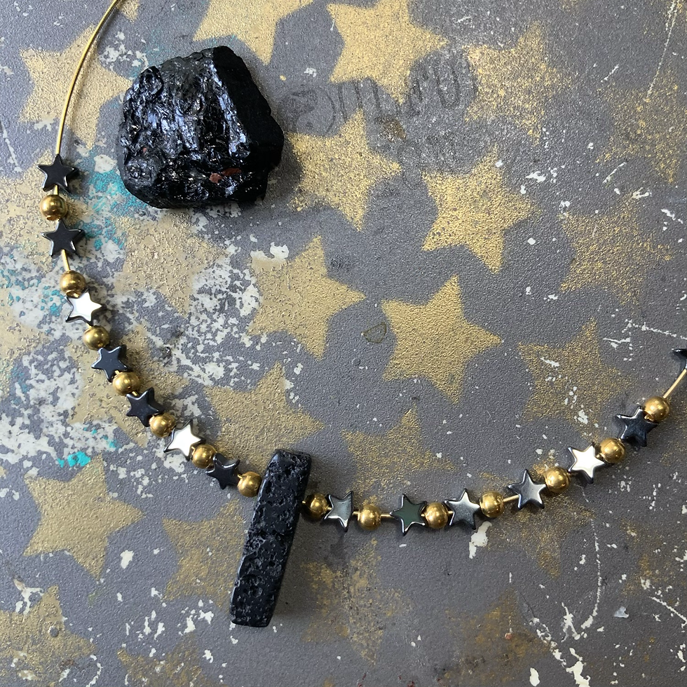 Lava rock & Hematite gypsy slide necklace